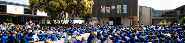 Học sinh toàn trường St Patrick’s College sinh hoạt dưới sân