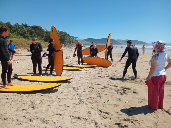 Học sinh William Colenso học lướt sóng tại bãi biển Waimarama