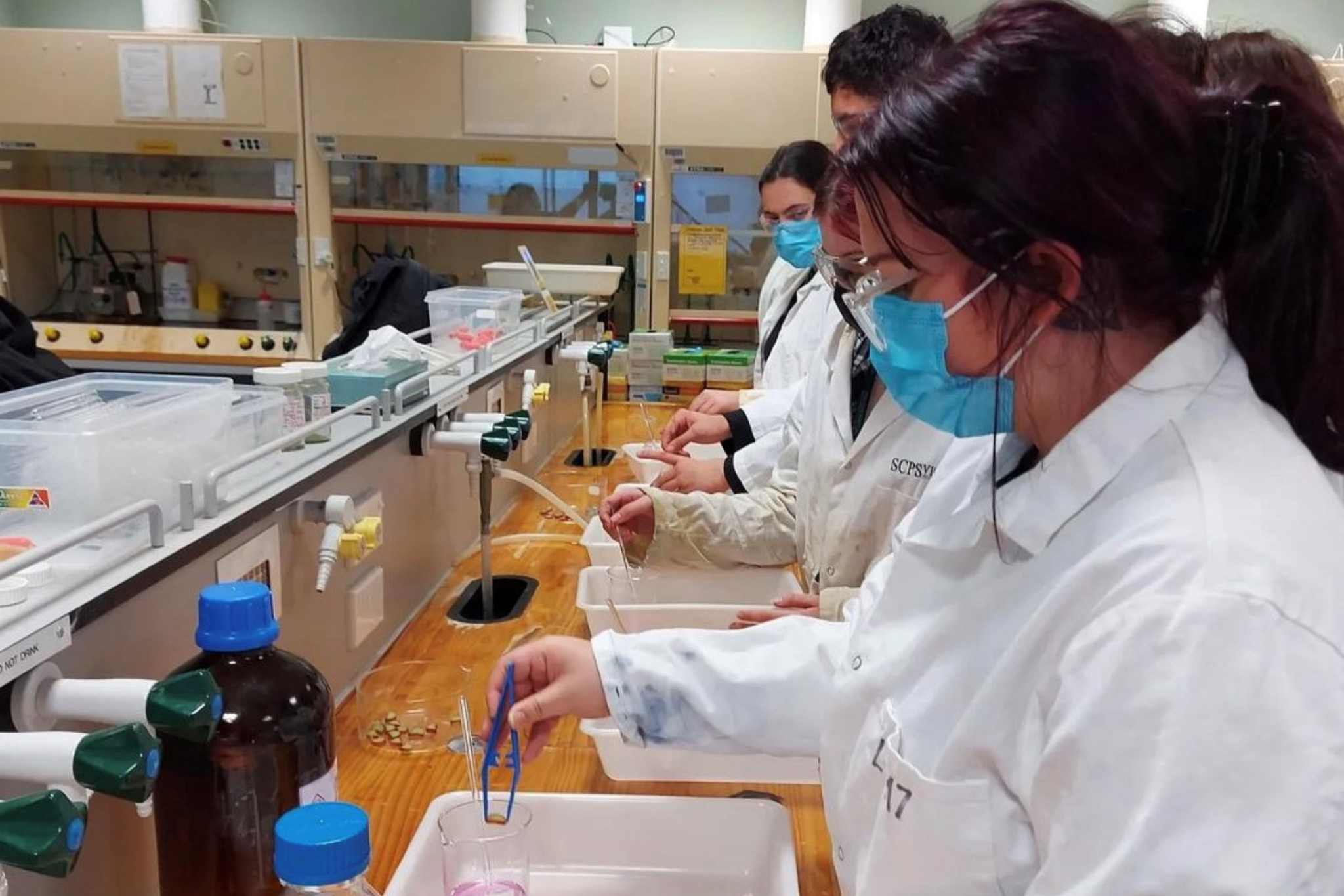Học sinh William Colenso College làm thí nghiệm trong tiết hóa học